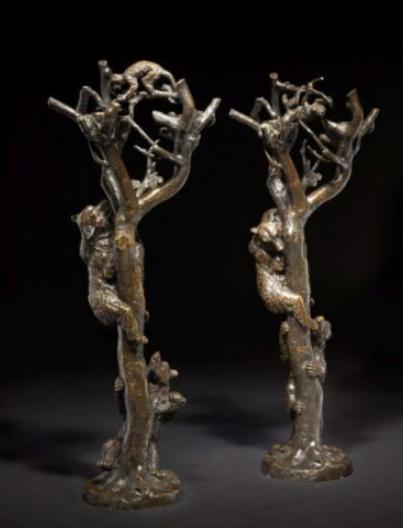 PAIR OF CANDLESTICKS WITH BEARS AND MONKEYS