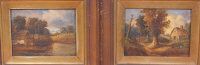 Pair of Suffolk landscapes with thatched cottages, figures and sheep
