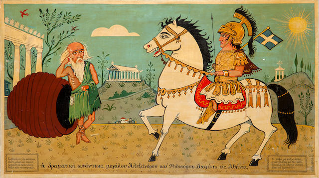 A dramatic ecncounter between Alexander the Great and the philosopher Diogenes