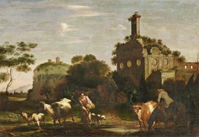 | Italian Landscape with Ruins and Shepherds on a Ford. Inscribed lower right: | |