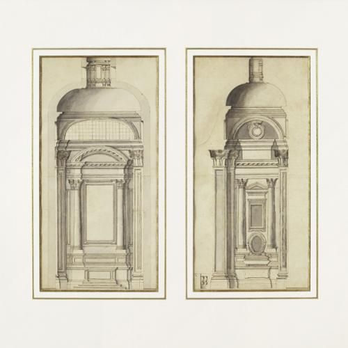 | TWO ARCHITECTURE DRAWINGS REPRESENTING THE CHAPEL AND THE ALTARPIECE OF SIGNOR GAVOTTI IN THE CHURCH OF S. NICOLA DE TOLENTINO | |
