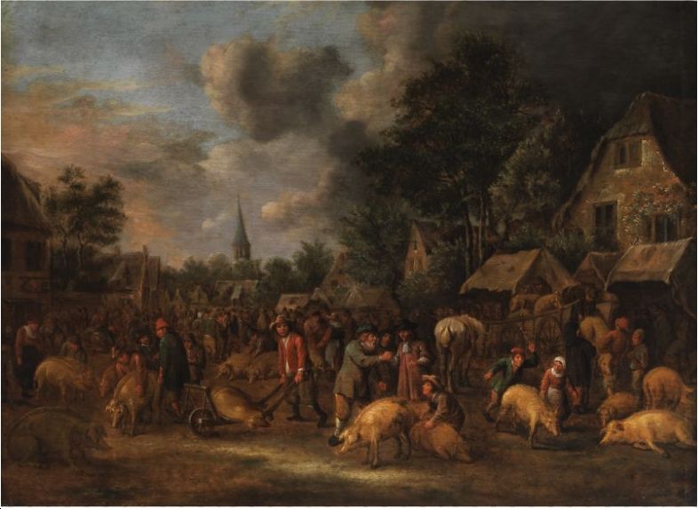 GROSSER SCHWEINEMARKT IN EINEM NIEDERLÄNDISCHEN STÄDTCHEN