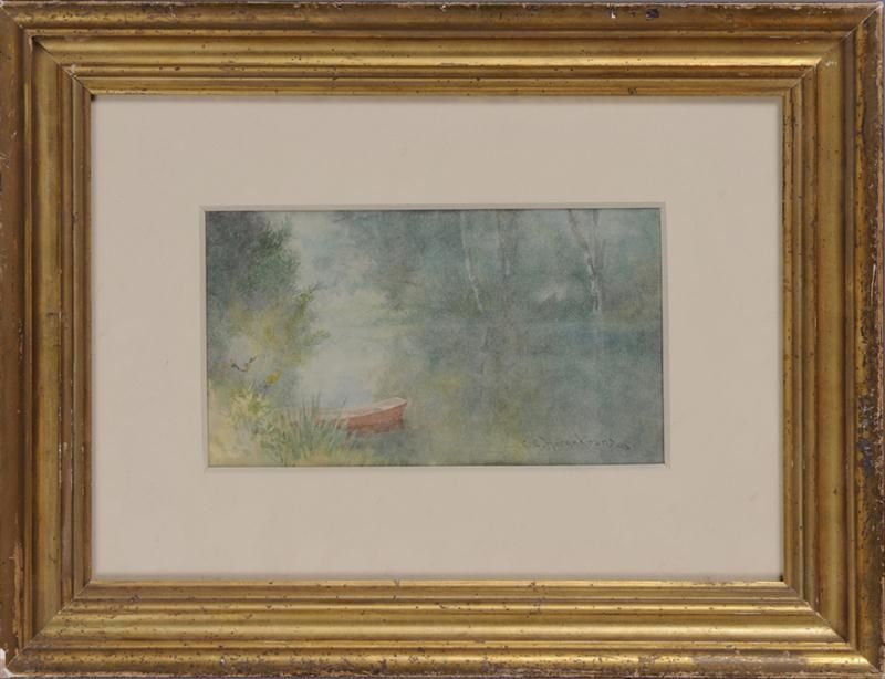 LANDSCAPE WITH ROWBOAT ON LAKE