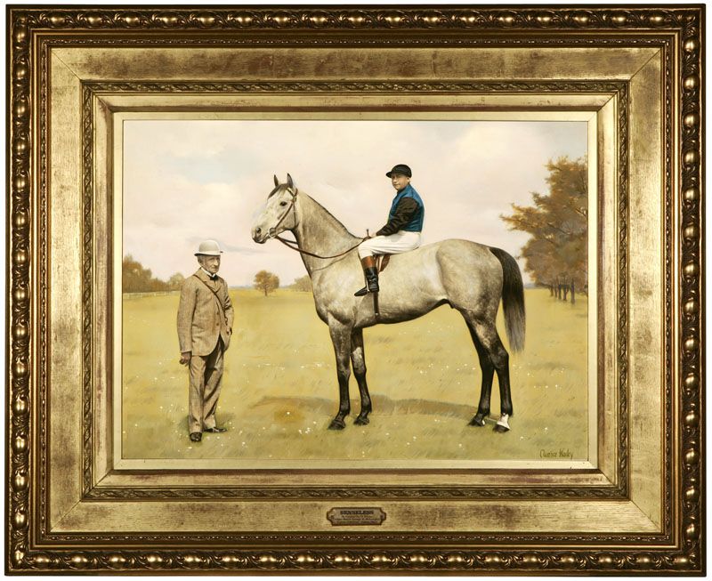 Figure with jockey and racehorse, 'Senseless,' Newmarket, Suffolk, England