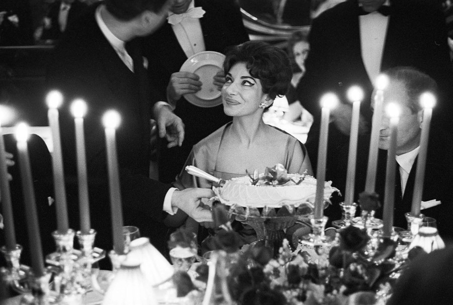 | Maria Callas lors d'un repas à Paris. 22 avril 1959. | |