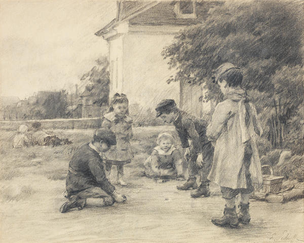 | Partie de billes, étude, enfants jouant dans la rue | |