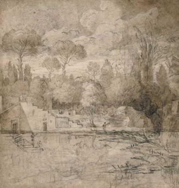 | Chalk black and white chalk, brown wash, on two joined sheets | |
