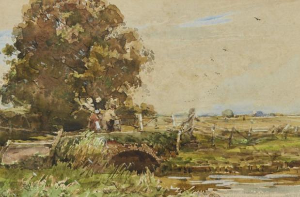 | COUNTRY FOLK TRAVERSING A SMALL BRIDGE | |