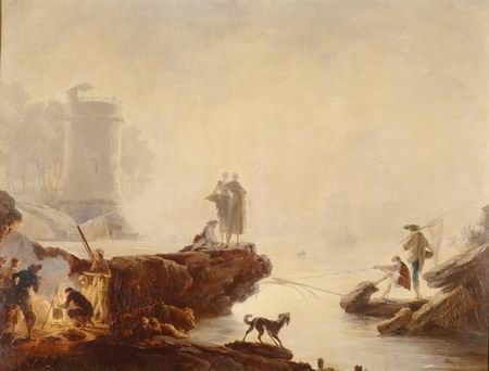 PECHEURS REMONTANT LEURS FILETS A L'AUBE