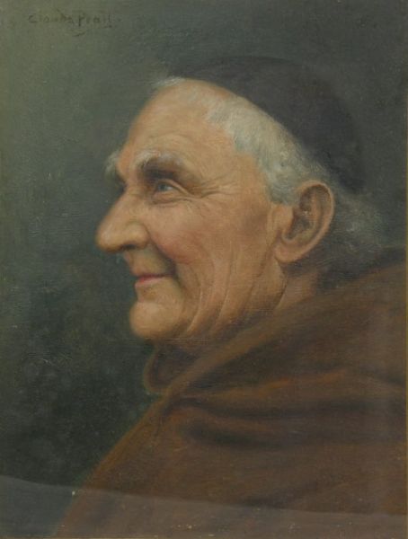 An elderly gentleman, head and shoulders, wearing a skull cap and brown cassock