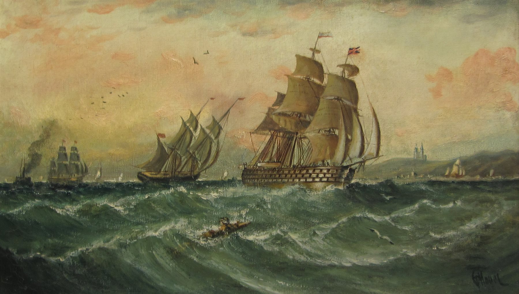 | H.M.S Diomede the 44 gun 5th rate passing the Reculver Towers on the Kent Coast | |