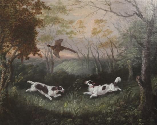 Spaniels flushing out cock pheasant