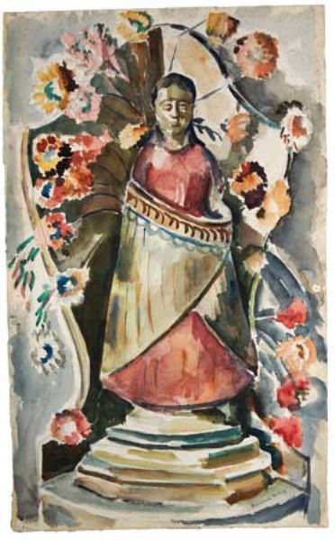 | Watercolor over pencil on cream wove paper mounted on card stock | |