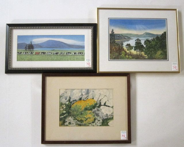| One depicting Netarts Bay, another a row of cows at Oceanside and the third wild flowers among rocks | |