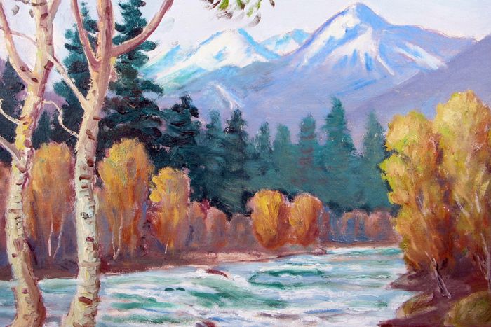 | Landscape with Santiam River near Idanha, Oregon (near Detroit Dam). | |