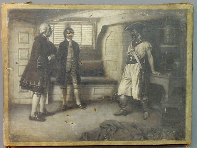 | a pirate caught aboard a sailing ship in the Captain’s quarters | |