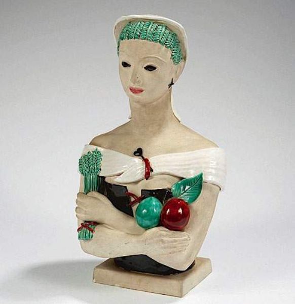 | Buste été en terre cuite blanche rehaussée de polychromie (infimes éclats à la base) | |
