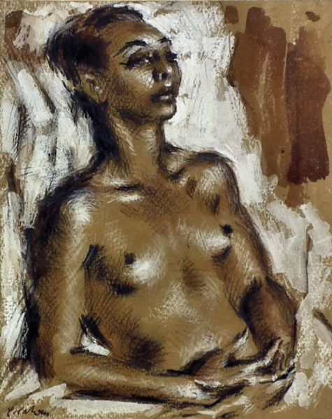 Ink sketch heightened in white - preparatory drawing for 'Monique Asleep'