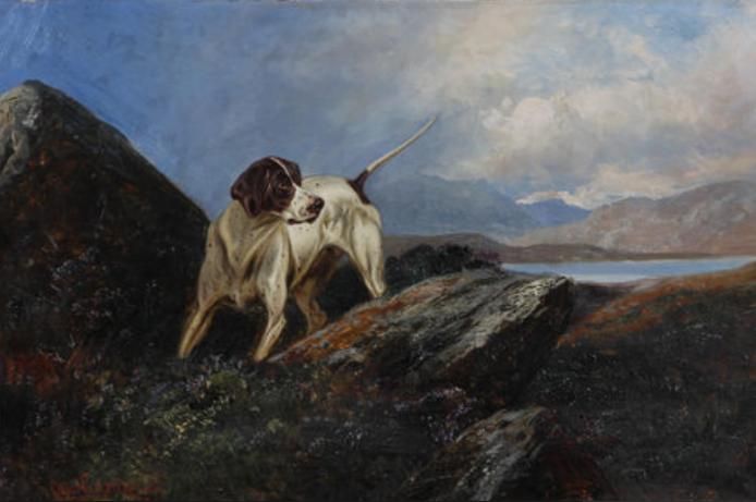 | English pointer in a lake landscape, together with another similar of a setter, a pair | |