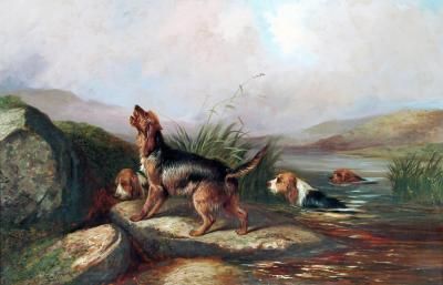 Otter Hounds at a Lake Edge