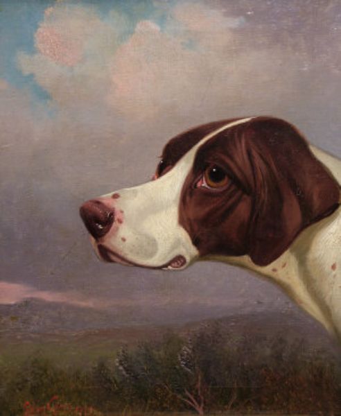 Portrait of a gun dog in a landscape