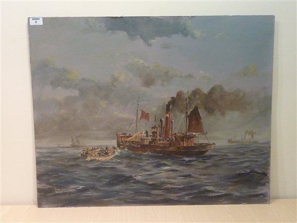 Hull Steam Trawler H99 taking on Supplies at Sea