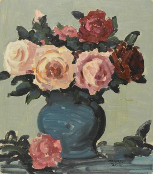 Still life with roses in a blue vase; Still life with orange flowers (two)
