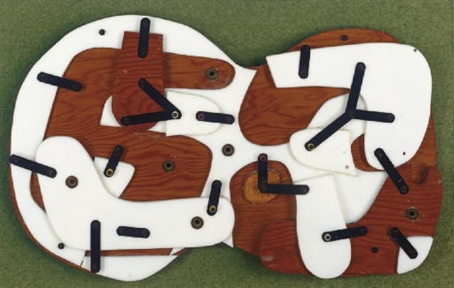 | Wood metal, bolts, screws and felt assemblage on wood | |