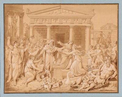 A sacrifice to Diana, the Goddess of Hunting. Signed and dated C. M. Metz 1822. Drawing ink and wash on paper. Sheet size 417×547 mm. | |