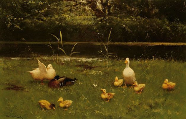 Ducks and chicks by the waterside