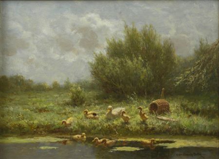 DUCKS AND DUCKLINGS BY THE WATERSIDE