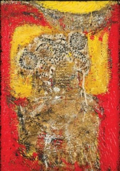 Oil and mixed media on canvas laid to masonite