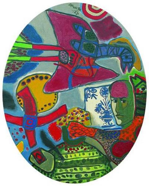 | Autoportrait au carreau de Delft et aux deux oiseaux exotiques | |