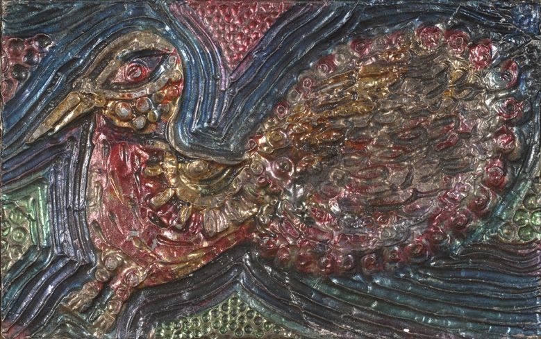 Metal reliefs depicting birds