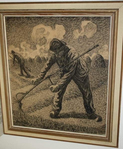 Boeren met zeis in het veld