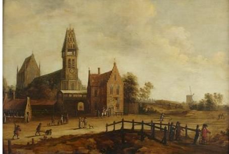 A FLEMISH VILAGE WITH FIGURES PROMENADING