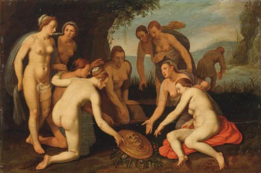 | Perseus washing his hands after liberating Andromeda and placing the head of Medusa on a bed of leaves and sea weed | |