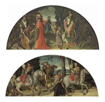 | Scenes from the life of Saint James the Greater: Philetus rescued from the enchantments of Hermogenes; and The three knights of | |