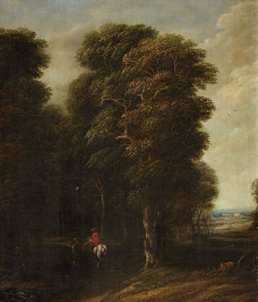WOODED LANDSCAPE WITH A RIDER