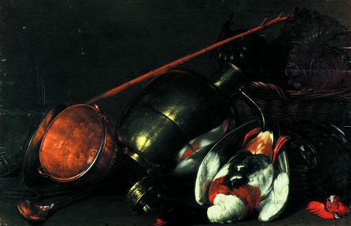 | Nature morte aux pièces de cuivre et de gibiers sur un entablement | |