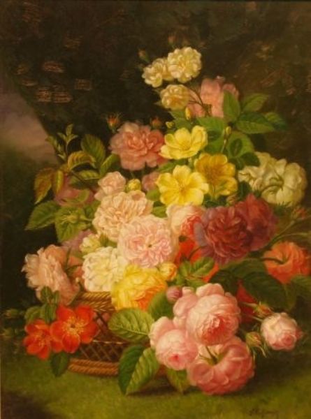 | Still Life with Carnations, Roses and other Flowers in a Woven Basket | |