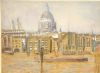 Gezicht op een Londense kade met St. Pauls op de achtergrond