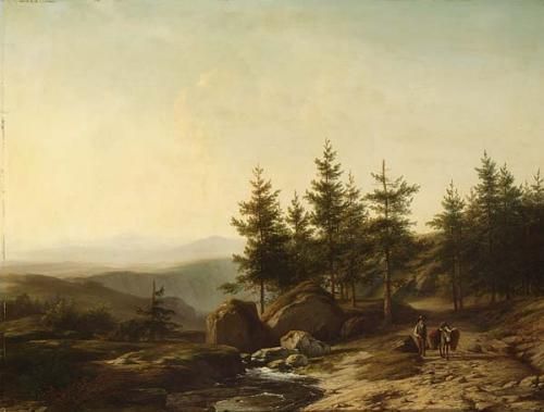 A TRAVELLER IN A MOUNTAINOUS LANDSCAPE