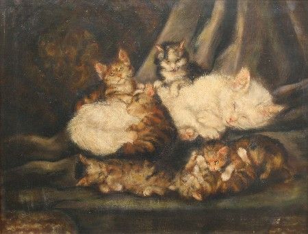 study of a cat with kittens