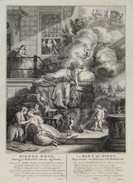 Didoos dood, Boertig in Hollandsche kleedy afgebeeld