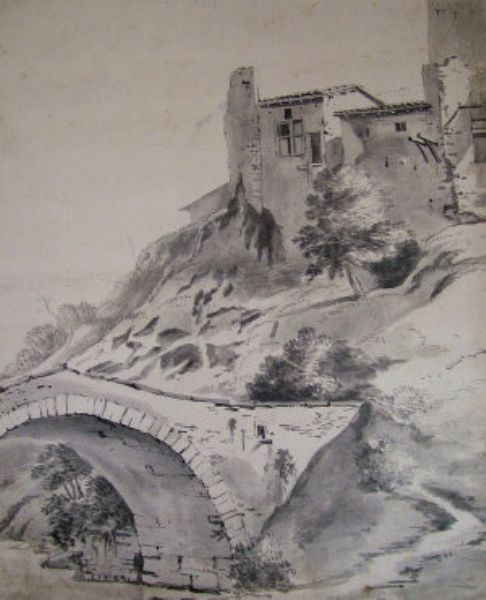 A Rural building on a hilltop, above a bridge