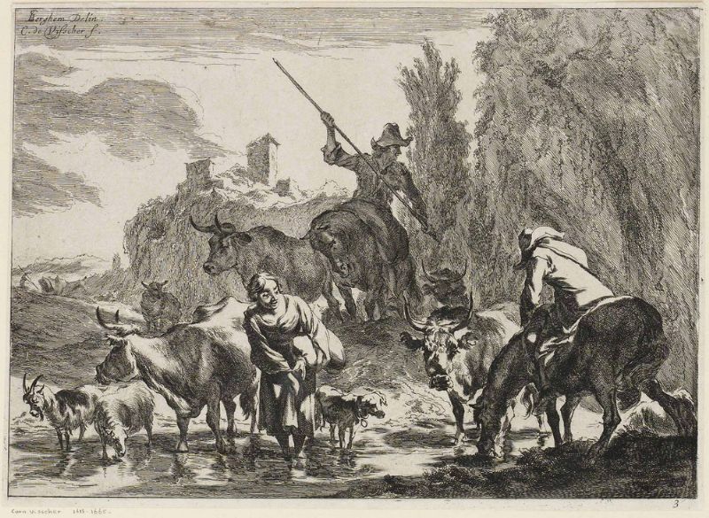PASTORALT LANDSKAP MED FIGURER OCH KREATUR