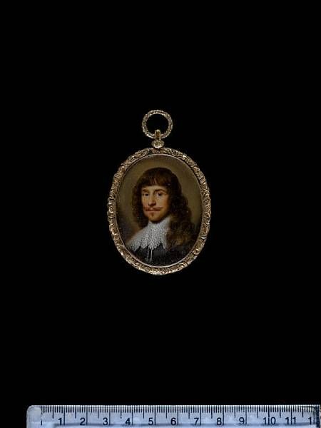 | A Gentleman, wearing black doublet with white lace falling collar tied at the front with tasselled cords, his curled brown hair | |