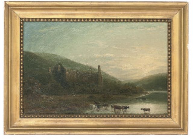 Cattle watering before Tintern Abbey