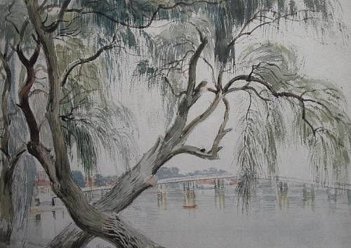 Old Battersea Bridge seen through a willow tree from the Lots